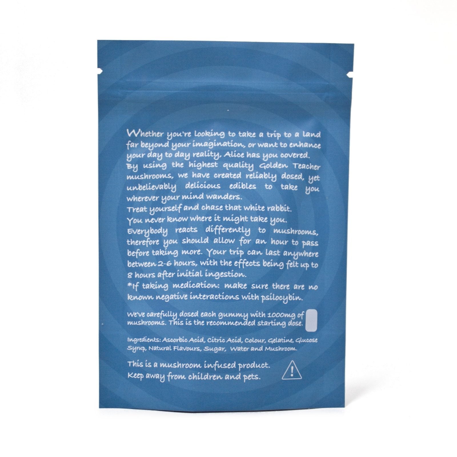 Whether you’re looking to take a trip to a land far beyond your imagination or want to enhance your day to day reality, Alice has you covered. By using the highest quality Golden Teacher Mushrooms, we have created reliably dosed, yet unbelievably delicious edibles to take you wherever your mind wanders.